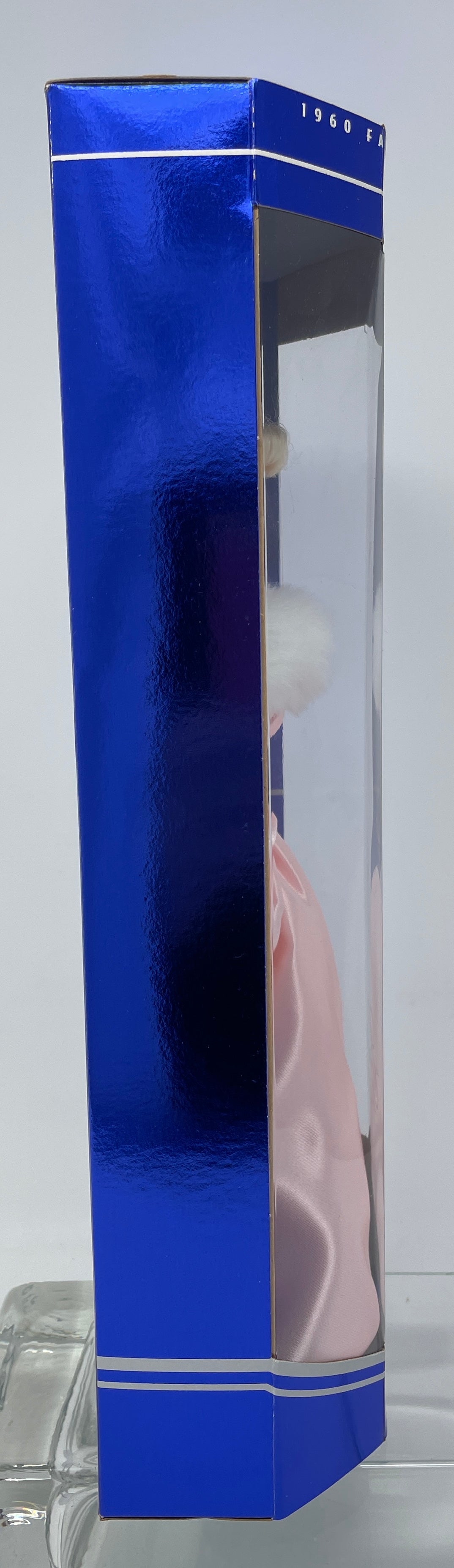 Heads turn and jaws drop as the Enchanted Evening Blond Barbie walks in. In her gorgeous icy-pink satin strapless gown, this collectors' Barbie looks a picture of elegance, and the faux fur stole only adds a touch of pizzazz. The train of the skirt that this 1996 Barbie doll wears is a dramatic accessory and looks extremely chic, while the opera-length gloves, a faux pearl choker, and matching ear-rings add to her classy appearance. This collectors' Barbie wears cute little transparent open-toe pumps on her dainty little feet. With her shining and sleek hair done up, this 1996 Barbie doll will steal your heart and leave you speechless.