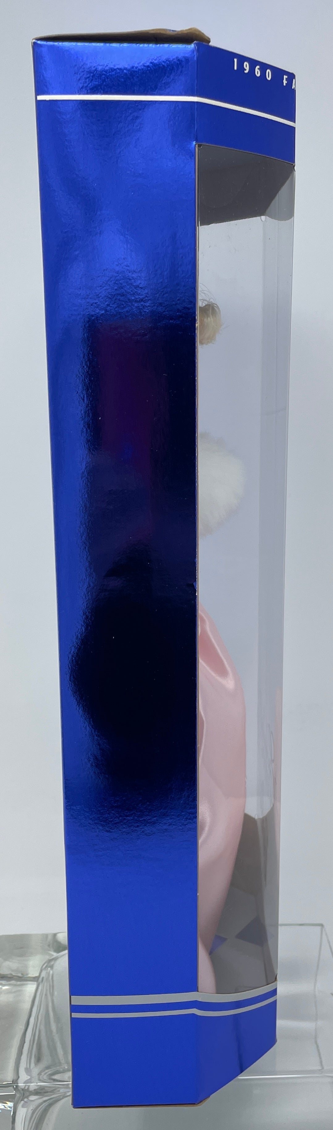 Heads turn and jaws drop as the Enchanted Evening Blond Barbie walks in. In her gorgeous icy-pink satin strapless gown, this collectors' Barbie looks a picture of elegance, and the faux fur stole only adds a touch of pizzazz. The train of the skirt that this 1996 Barbie doll wears is a dramatic accessory and looks extremely chic, while the opera-length gloves, a faux pearl choker, and matching ear-rings add to her classy appearance. This collectors' Barbie wears cute little transparent open-toe pumps on her dainty little feet. With her shining and sleek hair done up, this 1996 Barbie doll will steal your heart and leave you speechless.