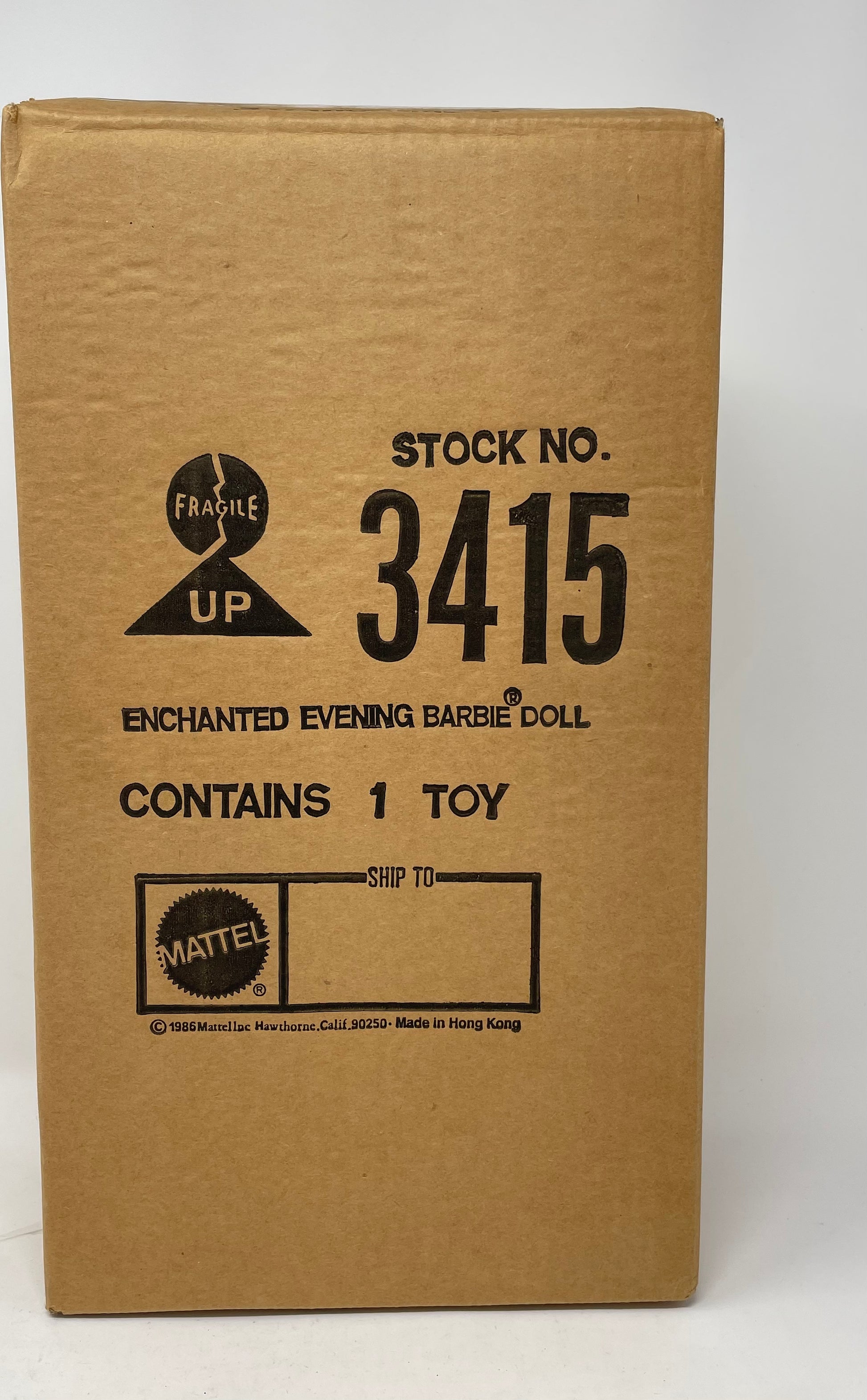 This Enchanted Evening Porcelain Barbie has never been removed from its shipping carton. You will be the first collector to remove the box from the carton and open it to reveal the mint condition doll inside. Your satisfaction is guaranteed with the vintage collectible doll and fashion inside or I will refund your money and pay to have you return it to me. These photos are of this specific doll for sale.