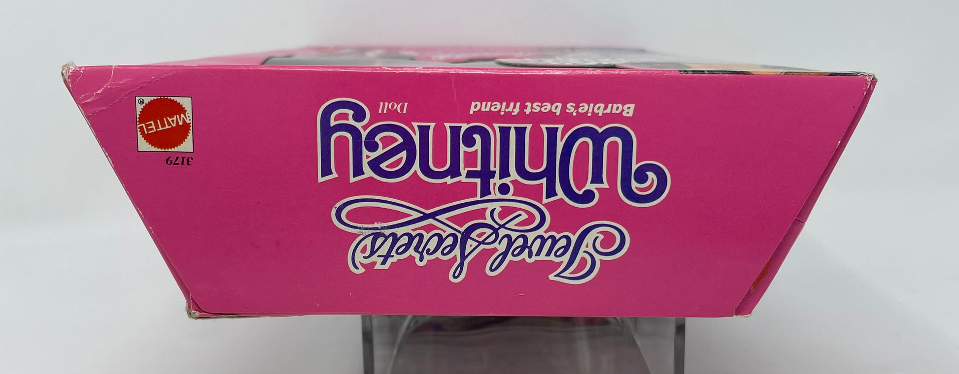 The package is in good condition with the exception of creasing and dent on top right front and some minor wear on bottom right. Whitney’s crown has fallen off and is still inside the box. Otherwise doll and accessories inside are mint. Photos are of this specific toy for sale. Please review carefully and thoroughly as all sales are final and no refunds will be issued.