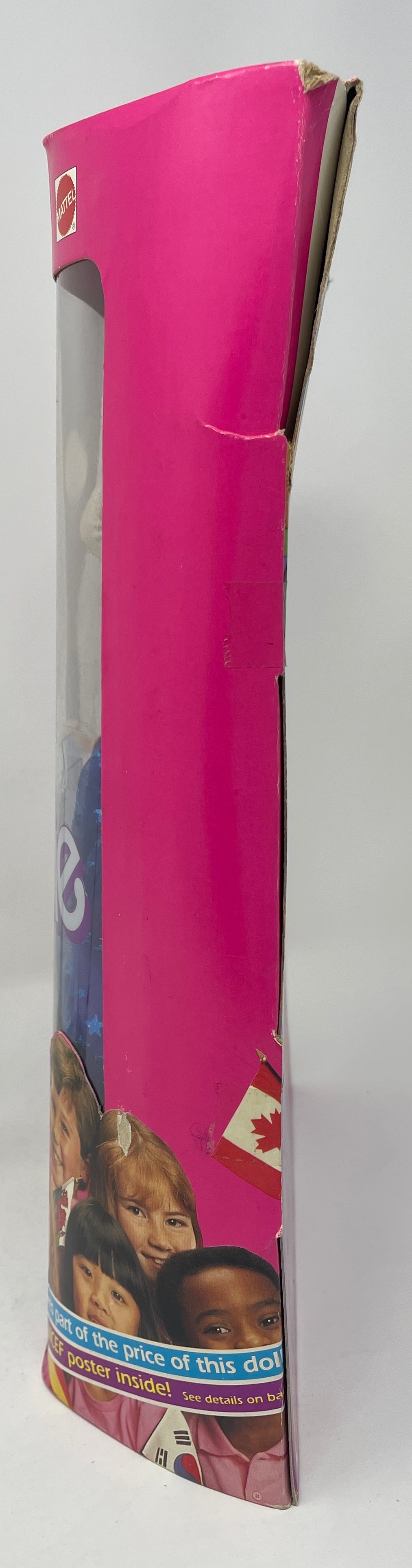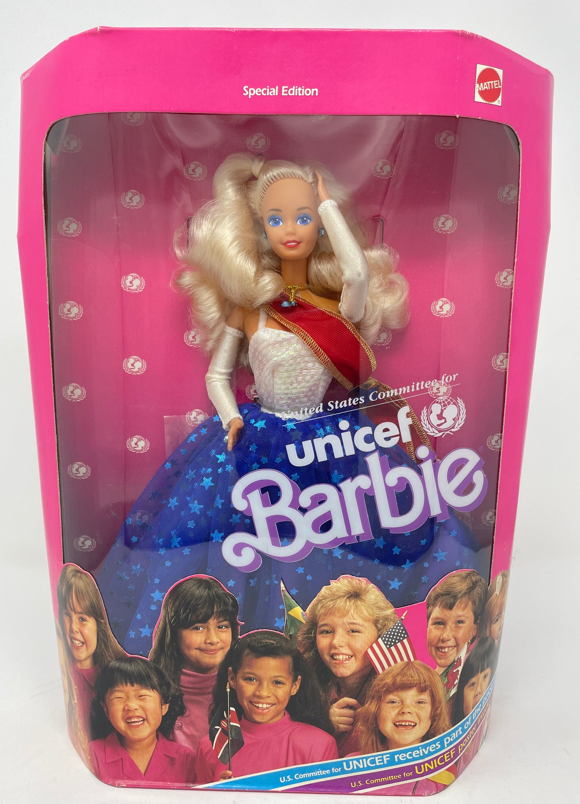 Barbie loves all the children of the world! And UNICEF has been caring for children around the world ever since it was created at the very first session of the United Nations over forty years ago UNICEF means United Nations Children's Fund. With the purchase of this doll at retail, buyers helped UNICEF help needy children. UNICEF brings food to the hungry, medicine to the sick, and clean water to children who are thirsty. You also get a beautiful poster